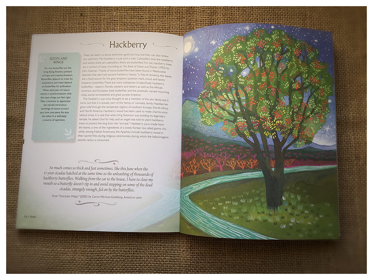 Previous Next Hackberry Tree BE MORE TREE A Journey of wisdom, symbols, healing and renewal. Written by Alice Peck. Illustrated by Melissa Launay. 56 Illustrated trees. Published by CICO BOOKS 2016