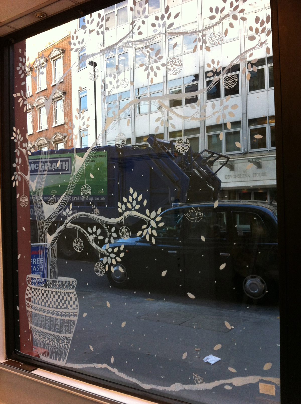 Previous Next 2013 DECORATED WINDOW DISPLAY Hand painted directly onto the glass christmas window display for SURVIVAL INTERNATIONAL charity shop in East London. December 2013 © Melissa Launay